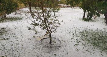Güzeloluk Mahalle Muhtarı İbrahim Doğan, "İkinde saatlerinde yağış etkisini attırdı, bir süre sonrada yağmur yerini doluya bıraktı. Dolu da açık alanda üreticilerin domates, biber, patlıcan, lahana gibi sebzelere ve elma bahçelerine büyük ölçüde zarar verdi" dedi.