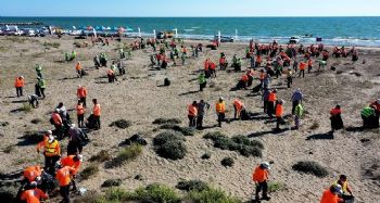 Mersin’de ’Dünya Temizlik Günü’ kapsamında sahil kesiminde gerçekleştirilen temizlik etkinliğinde, kamyonlar dolusu çöp toplandı.