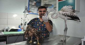 Veteriner Hekim Lokman Eren, Göksu Deltası'nda allı turna olarak bilinen ve koruma altındaki flamingo ve şahinin yaralı olarak bulunduğunu belirterek, “Flamingolar Göksu Deltası'nı göç hattı olarak kullanmaktadırlar. Bu bölgede hem koruma altında hem de zaman zaman göç bölgesi olduğu için göçüp gitmektedirler. Flamingo yavru olduğu için elektrik tellerine çarpıp yere düşmüş. Duyarlı vatandaşlarımız bunu alarak bize getrdiler. Tedavisi ve beslenmesini yaptık. Flamingomuzu doğal yaşama bırakacağız. Şahinimiz ise yine Göksu Deltası'nda bulundu. Sıcaklardan dolayı yeterli beslenmeyi yapamamış, güçsüz durumda bize getirildi. Gerekli vitamin takviyelerini yaptık. Tedavisini tamamladık. Şahinimizi de doğal yaşama bırakacağız” dedi.