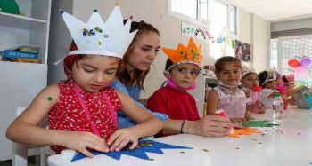 Mersin'in merkez Toroslar ilçesi Mevlana Mahallesinde yer alan Kadın ve Çocuk Atölyesinde düzenlenen etkinliklerde de kız çocukları eğlenerek haklarını öğrendi. Kadın ve Aile Hizmetleri Dairesinde avukat olarak görev yapan Nida Gamsız, çocuklara haklarıyla ilgili bilgiler verdi. ‘Çocuğum haklıyım' kartlarıyla eğlenerek öğrenen çocuklar, etkinlik sonunda çocuk haklarını içeren illüstrasyon boyama da yaptı. Eğitici Melis Sonay Berber ile birlikte taç süslemesi yapan çocuklar, kendi zevklerine göre süsledikleri taçları taktı.