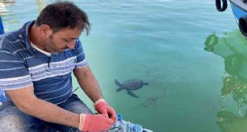 Akdeniz'in simgesi Caretta Carettaları balıkçılar, ağlarından arta kalan balıklarla besleyerek hem günün yorgunluğunu atıyor, hem de dostluklarını gösteriyor.