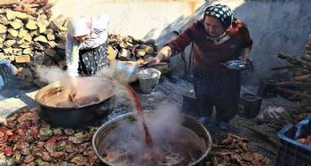 Narın toplanmasından suyunun sıkılmasına kadar olan süreci de anlatan Günay, nar suyunun kazanlara dökülmesinden sonra ateşin yoğunluğuna göre 6 ile 8 saat arasında kaynatma işlemini yaptıklarını kaydetti.