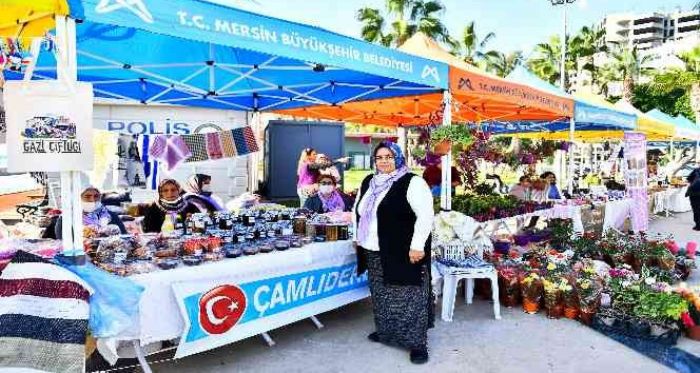 Büyükşehir Belediyesi, kadın üreticileri Adnan Menderes Bulvarı üzerinde yer alan Özgecan Aslan Barış Meydanı'nda bir araya getirdi. Tarsus'tan Anamur'a kadar birçok ilçeden gelen ve firmalara toplu üretim yapmaya başlayan 52 üretici kadın, Büyükşehrin kurduğu 50 stantta yerini aldı. Etkinlikte, el yapımı reçelden peynire, bakliyattan baharata, süs eşyalarından tekstil ürünlerine ve el işi takılara kadar birçok ürün satışa sunuldu. Stantlarda ayrıca sanatın birçok alanında uğraş veren sanatçılar eserlerini sergileme fırsatı buldu. ‘Kadın' isimli resim sergisi ve keçeden yapılan portre çalışmaları vatandaşlardan büyük beğeni topladı.