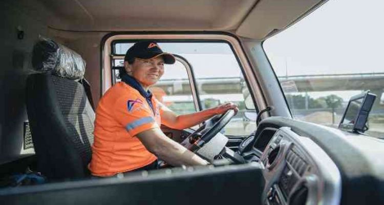 Süpürge kamyonunda kadın şoför