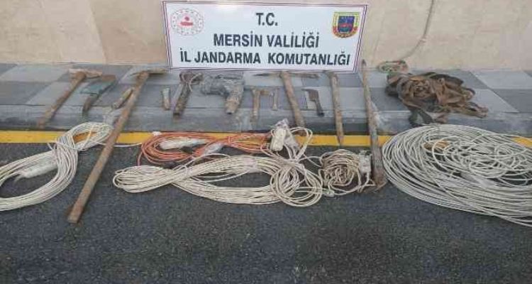 Kazıda kullanılan malzemelere el konulurken, şüpheliler gözaltına alındı.